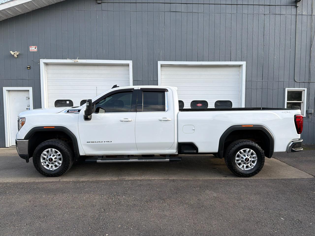 One Owner. Clean CarFax. 6.6 Liter Duramax Turbo Diesel. 8 Foot Long Bos / Bed. SLE Value Package. Heated Seats. Heated Steering Wheel. Wireless Apple CarPlay/ Android Auto. Remote Start. Preferred Package. HD Rear Vision Camera. Hitch Guidance with Hitch View Camera. Power Sliding Rear Window. Chrome Side Assist Steps. Heated Tow Mirrors. Snow Plow Prep / Camper Package. Tow Package.